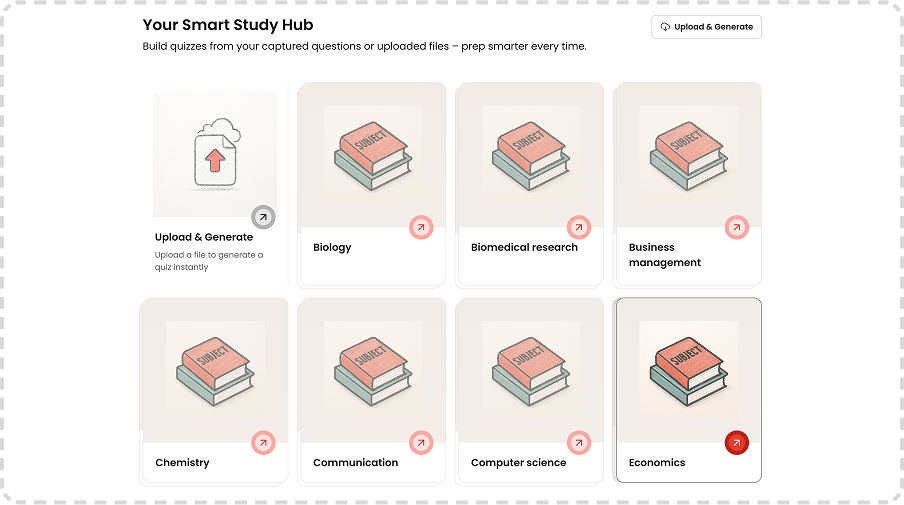 Turn your uploaded course materials into quizzes you can test your knowledge on.